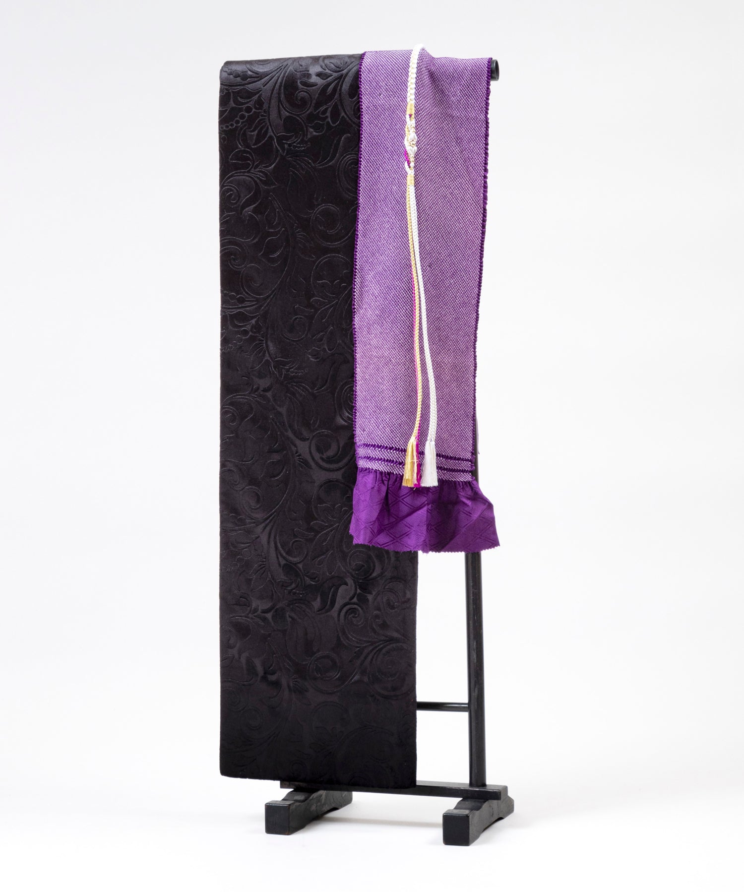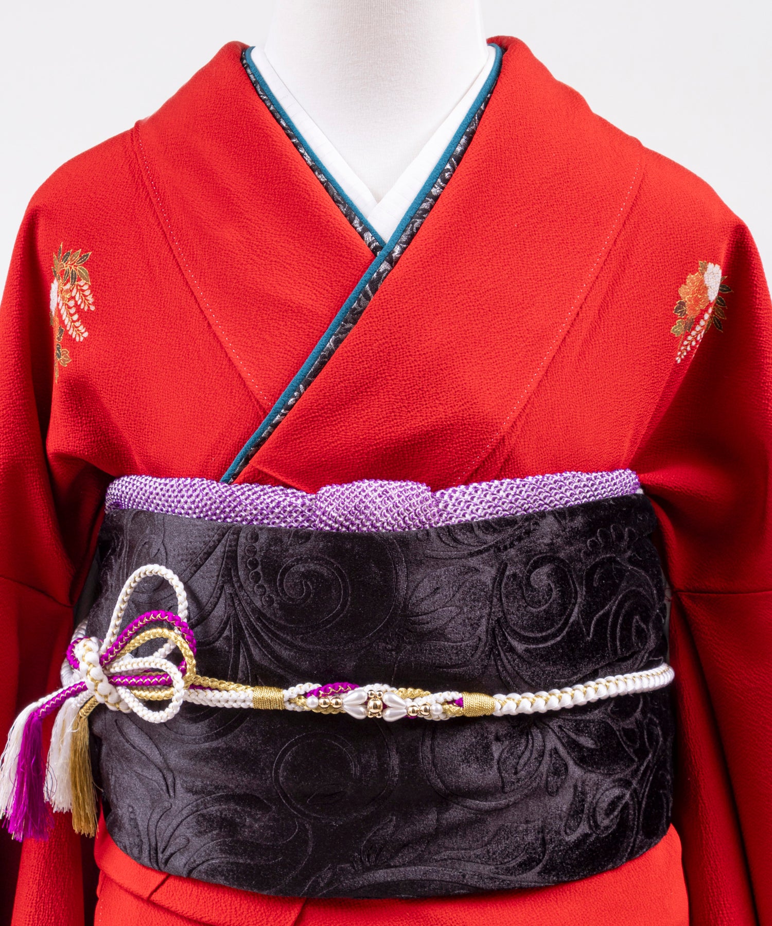 着物・帯・帯〆・帯揚・重ね衿・長襦袢(半衿付き)・肌襦袢(下着)・足袋・衿芯・腰ひも5本・帯枕・帯板・伊達〆2枚・コーリンベルト・三連ひも・草履・バッグ・タオル3枚
