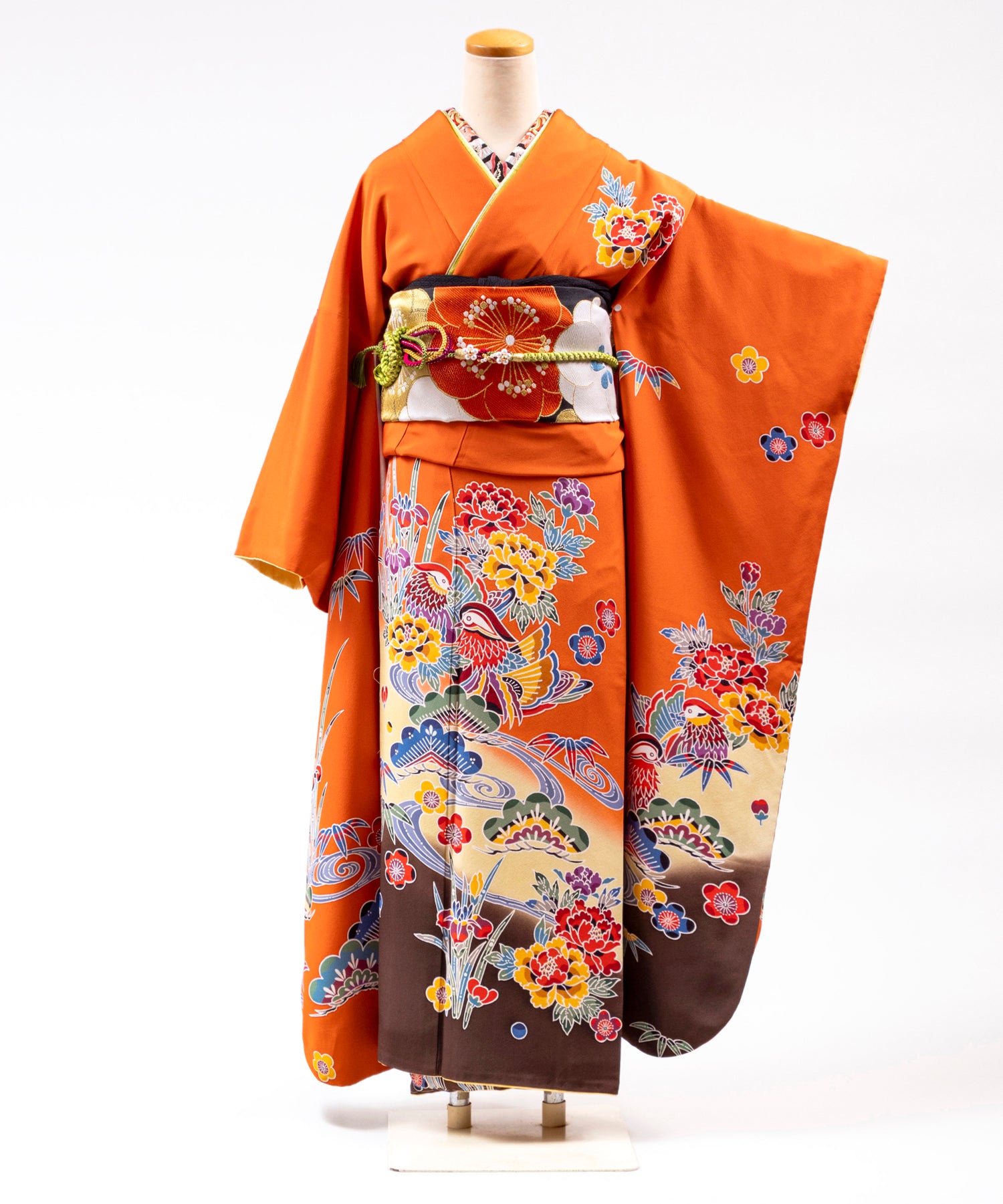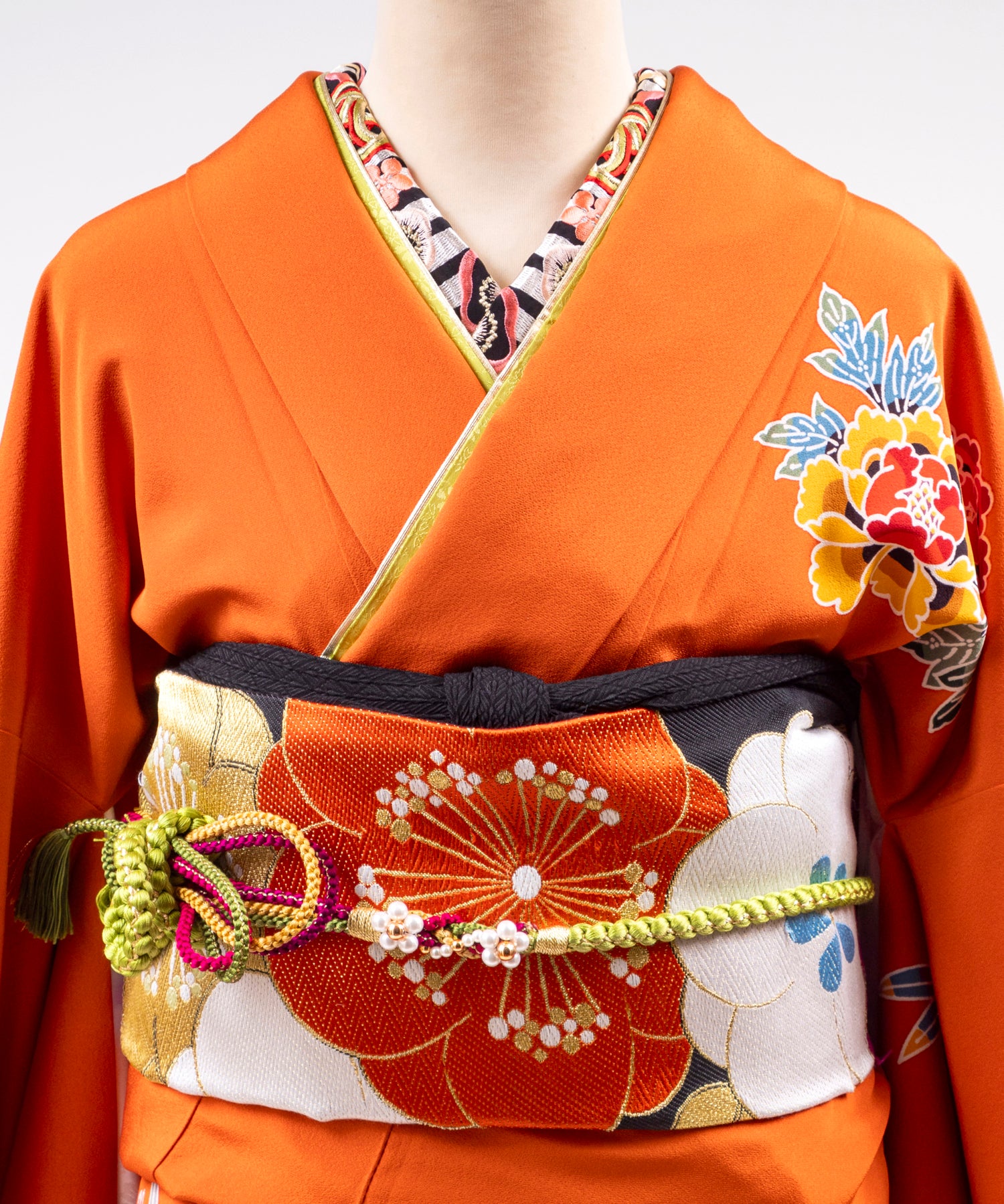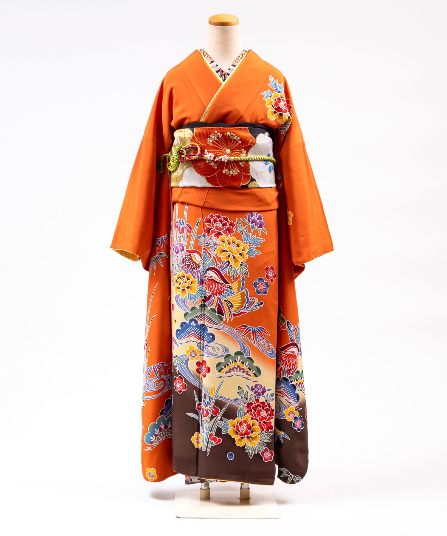 着物・帯・帯〆・帯揚・重ね衿・長襦袢(半衿付き)・肌襦袢(下着)・足袋・衿芯・腰ひも5本・帯枕・帯板・伊達〆2枚・コーリンベルト・三連ひも・草履・バッグ・タオル3枚