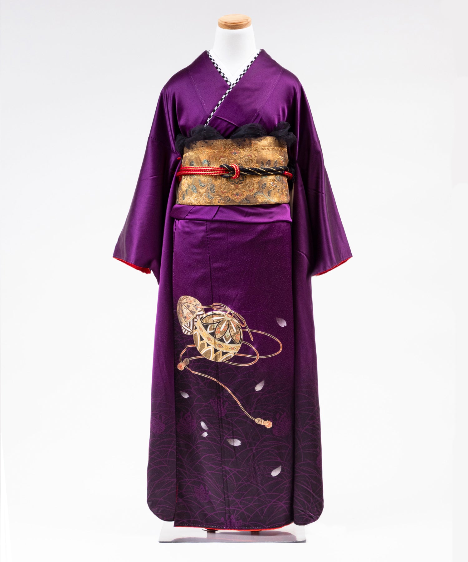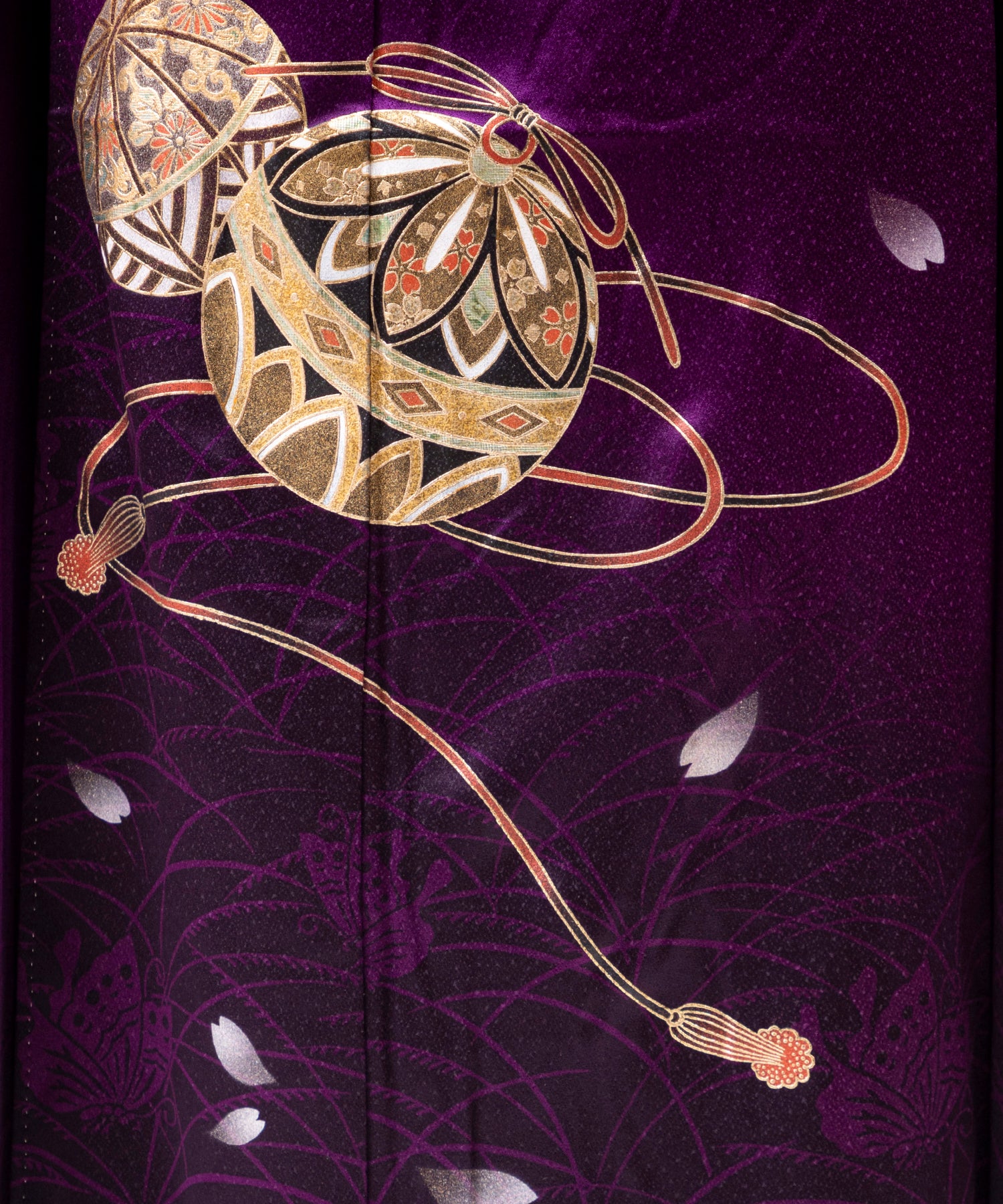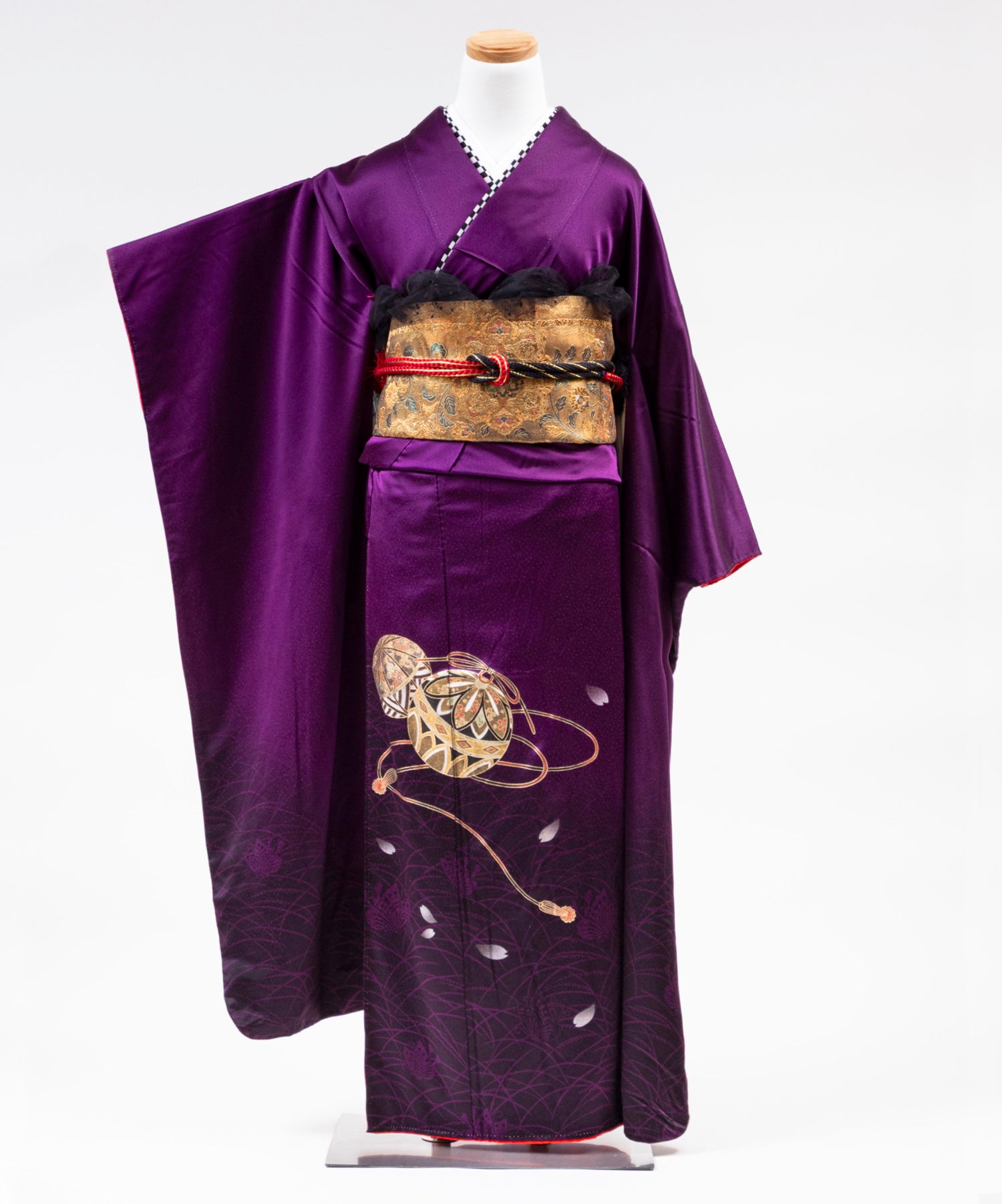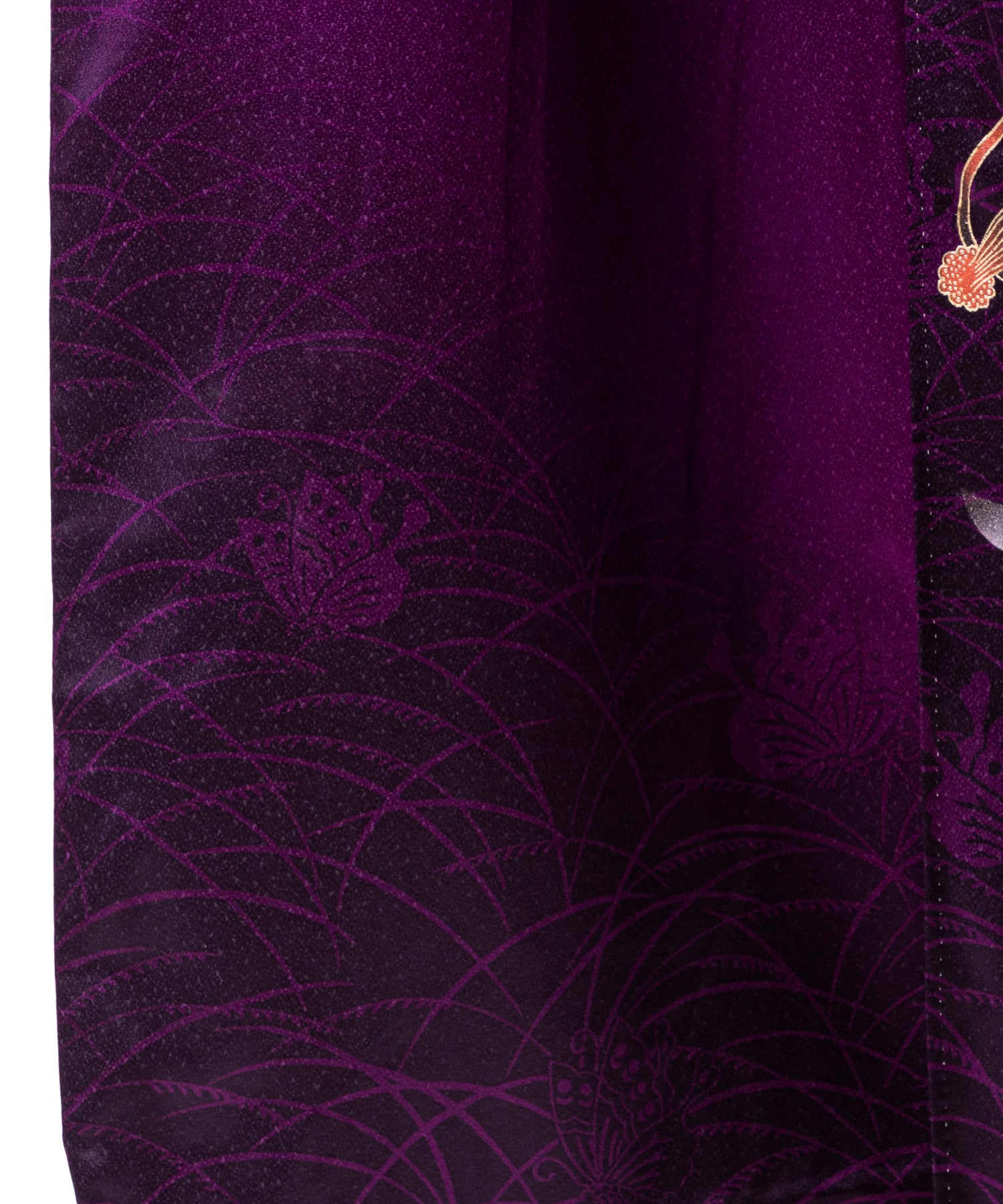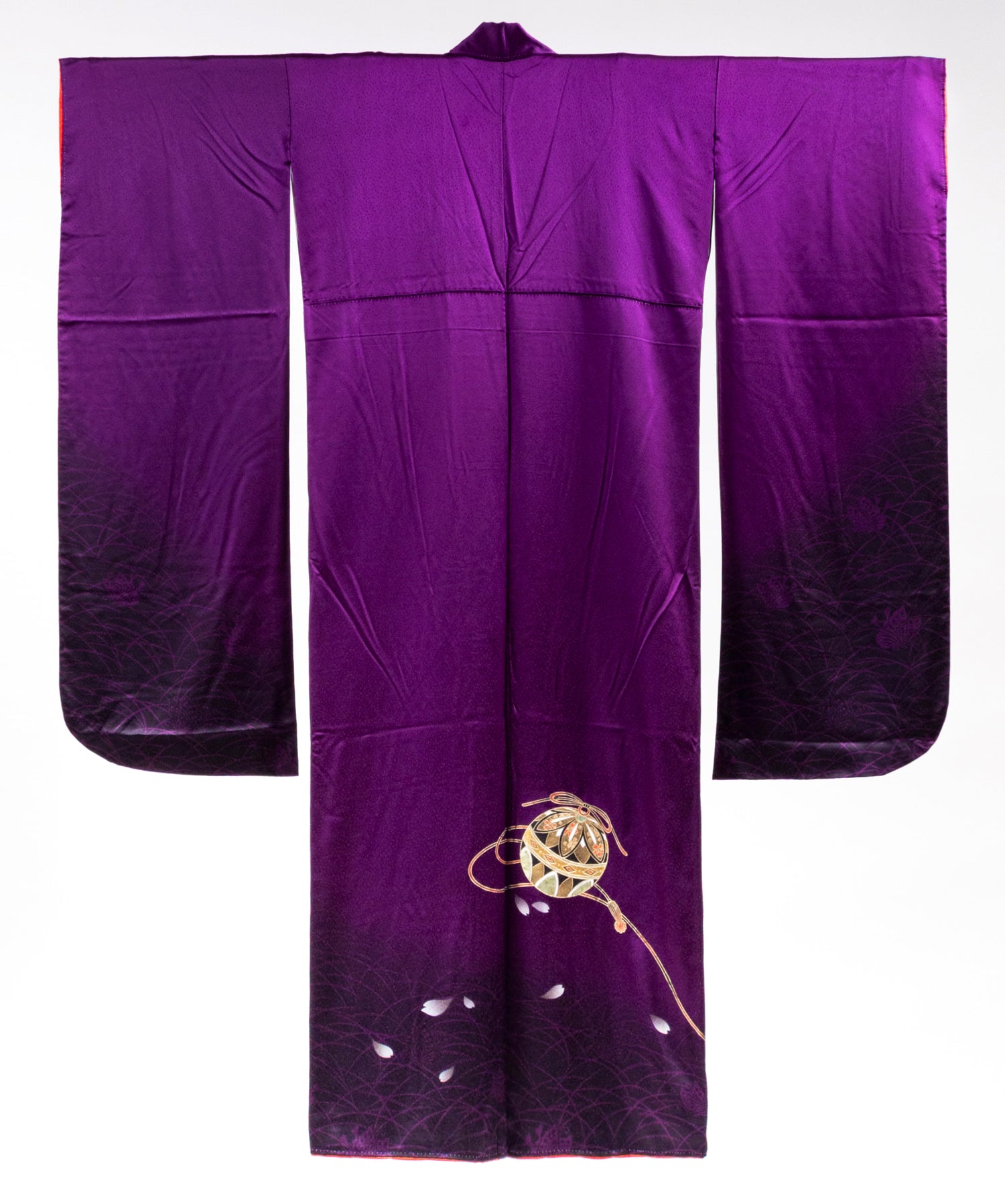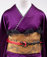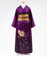 100,000 円深い紫を基調とし裾にかけて繊細な地模様と金糸の様な装飾が施された上品かつ艶やかな 一着。 落ち着きと気品が同居しています